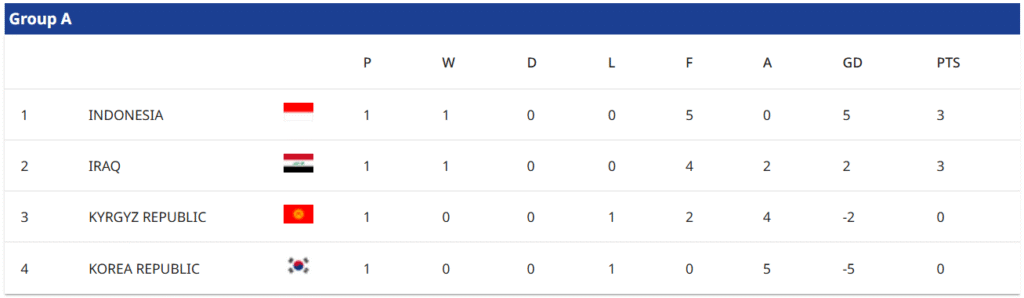 Kemenangan telak Indonesia atas Korea Selatan membuat timnas kokoh di puncak klasemen Grup A Piala Asia Futsal 2026. Di posisi kedua ada Irak, yang sama mengemas 3 poin atas kemenangannya dari Kirgistan 4-2.